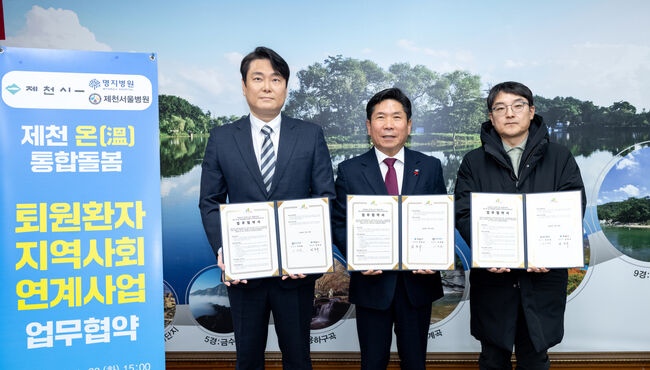 제천시는 지난 20일 제천명지병원, 제천서울병원과 함께 ‘제천 온(溫) 퇴원환자 지역사회 연계사업’ 업무협약을 체결했다고 밝혔다.이번 협약은 병원 퇴원 이후 돌봄이 필요한 환자(노인, 장애인)가 지역사회에서 안정적으로 생활할 수 있도록 의료기관과 지자체 간 협력체계를 구축하기 위한 것으로, “내 집에서 건강한 노후”라는 지역 돌봄 정책 실현을 목표로 추진된다.