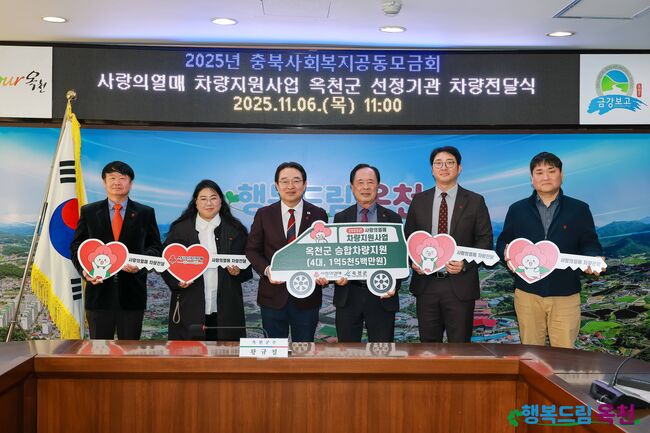 옥천군은 6일 군청에서 ‘2025년 사랑의열매 차량지원사업’에 선정된 관내 4개 사회복지기관에 승합차량 구매비용 총 1억 5천만 원을 전달했다.