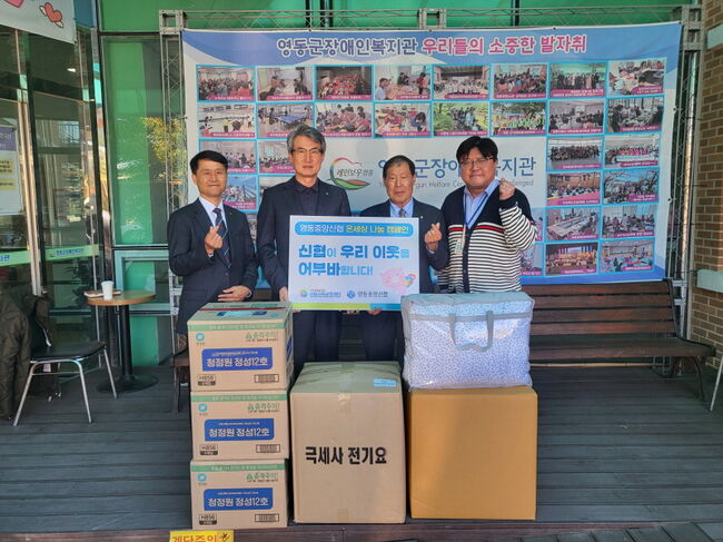 충북 영동군장애인복지관(관장 박병규)은 영동중앙신용협동조합(이사장 정환인)으로부터 지역 내 장애인 가정을 위한 난방용품과 생필품(60만 원 상당)을 후원받았다고 전했다.