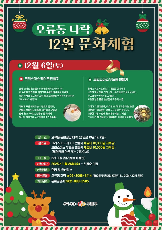 구로구, 다락에서 12월 겨울 특화 프로그램 운영… “연말 따뜻한 문화시간 선물”