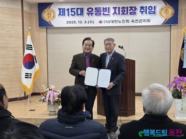 옥천군 대한노인회 옥천군지회장의 취임식이 3일 옥천군지회 사무실에서 개최했다. 이번 지회장은 제15대로 유동빈 위원이 연임됐다.