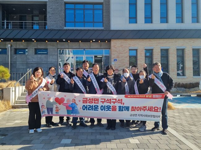 한청주 금성면장은 “추운 날씨에도 캠페인에 참여해 준 협의체 위원들에게 감사드린다”며 “발굴되는 위기가구에 대해서는 신속하고 촘촘한 맞춤형 복지서비스를 제공하겠다”고 밝혔다.
