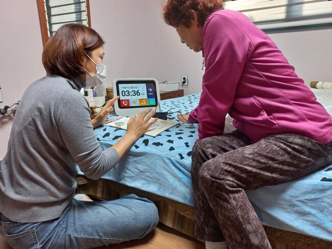 ‘AI-IoT 기반 어르신건강관리사업’은 허약·만성질환 등 건강행태 개선이 필요한 65세 이상 어르신을 대상으로 건강측정기기(손목활동량계, 체중계, 혈압계, 혈당계, 화면형 AI스피커)와 ‘오늘건강’ 앱(App)을 활용해 비대면 건강관리서비스를 제공하는 사업이다.