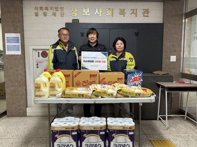 충북 증평군은 29일 증평군의용소방대연합회(회장 곽관호)가 증평삼보사회복지관(관장 오종식)에 지역 내 저소득 아동을 위한 생필품(40만원 상당)을 기탁했다고 밝혔다.기부된 생필품은 저소득 아동들의 건강한 성장과 안정적 생활을 위해 화장지, 물티슈, 치약, 라면 등이 전달될 예정이다.