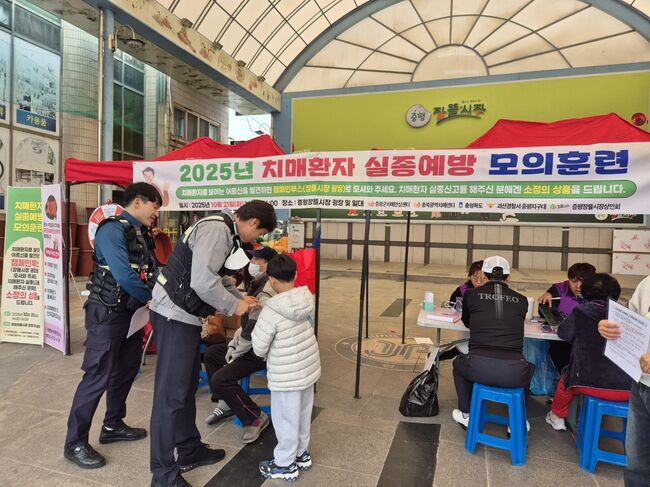 이번 훈련은 시장 내 가상 치매환자를 투입해 발견 주민이 안내 매뉴얼에 따라 신고하고 경찰에 인계하는 실제 생활형 훈련으로 진행됐다.