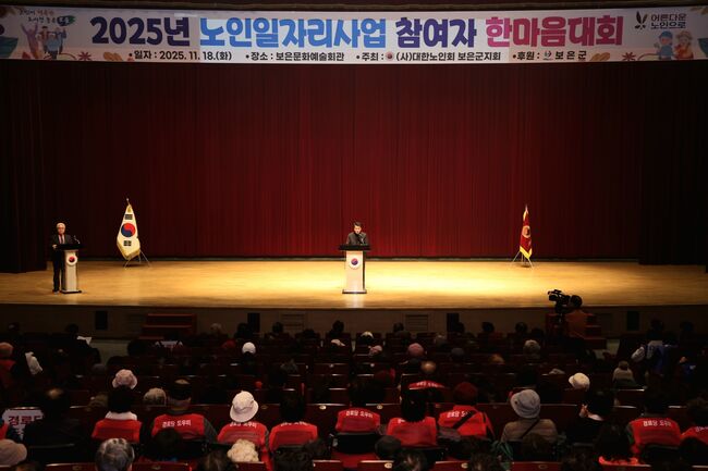 충북 보은군은 18일 보은문화예술회관에서 2025년 노인일자리 및 사회활동 지원사업 참여자 한마음대회가 성황리에 마무리됐다고 밝혔다.이번 한마음대회는 (사)대한노인회 보은군지회(지회장 이범로) 주관으로 추진한 2025년 노인일자리 및 사회활동 지원사업 참여자들을 위해 마련됐다.