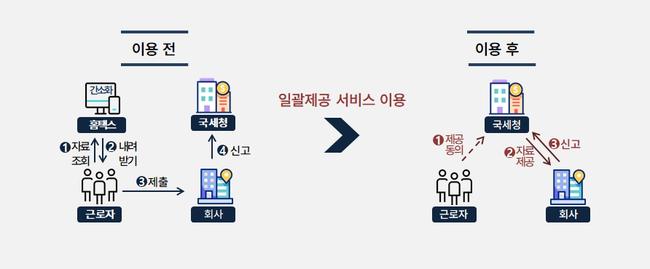• - 국세청, 회사가 근로자 대신 자료 수령하는 ‘일괄제공 서비스’ 신청 접수