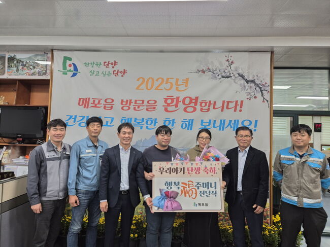 충북 단양군 매포읍은 지난 7월부터 9월까지 출생신고를 마친 신생아 가정에 축하금을 전달하는 ‘아기 탄생 축하 행복(福)주머니 전달사업’을 추진하고 있다고 22일 밝혔다.