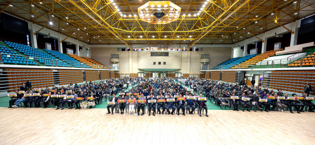 지난 28일 열린 제천시 제29회 노인의날 기념행사에서 지역 어르신들이 송전선로 제천경유 반대 의사를 표명했다.